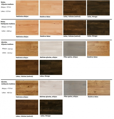medžio. Galima rinktis buko arba ąžuolo, klijuotą arba